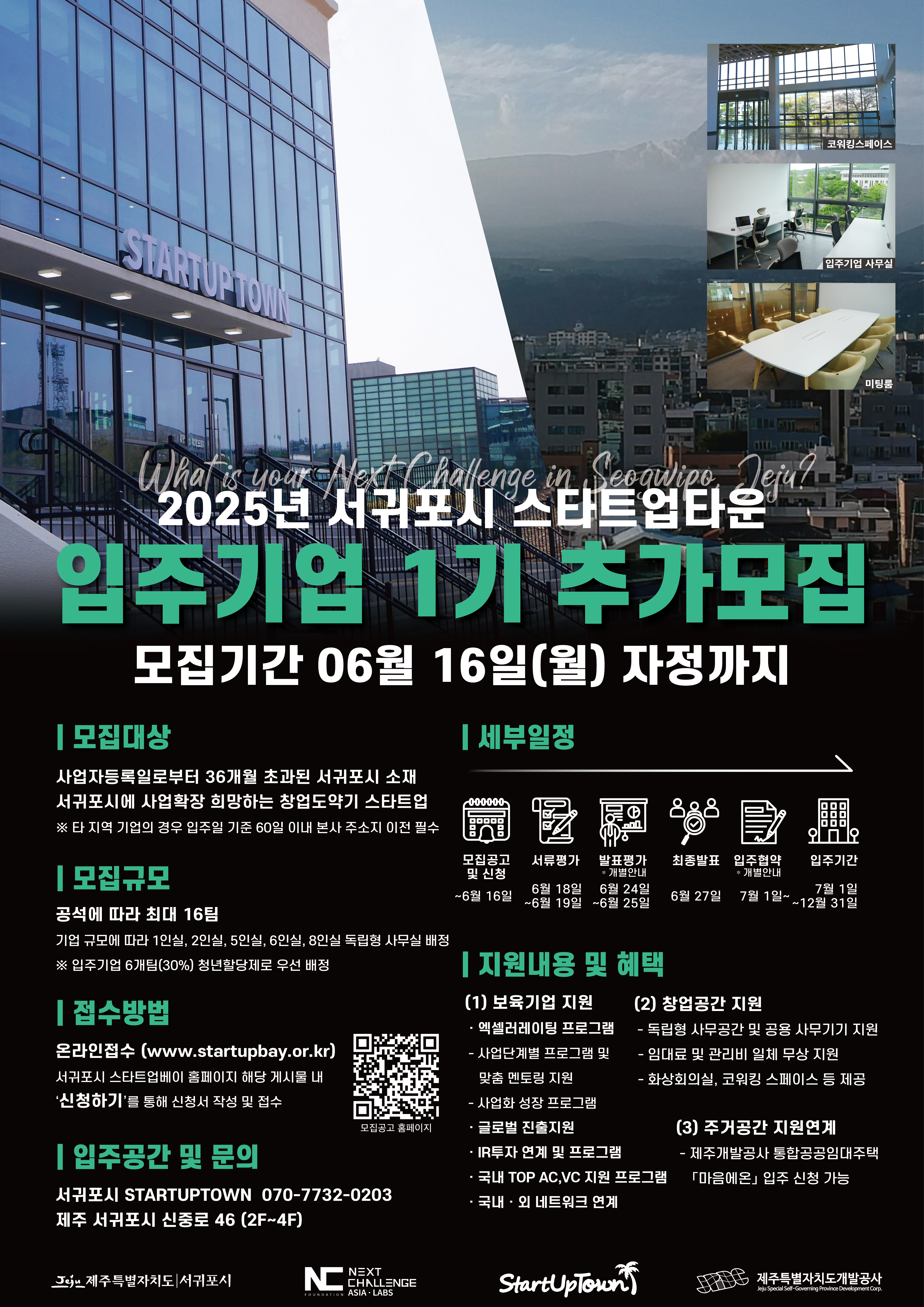• 입주공간 : 서귀포시 STARTUPTOWN(서귀포시 신중로 46, 2F~4F)