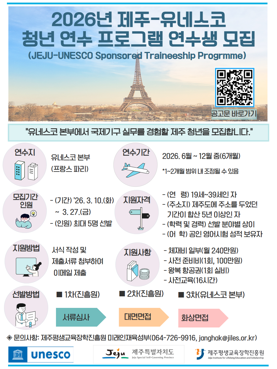 - 사 업 명: 2026년 제주-유네스코 청년 연수 프로그램